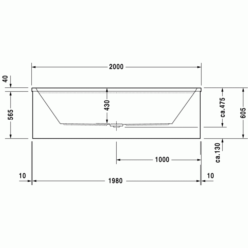 Duravit 2nd floor ванна прямоугольная 200 см с ножками, со специальным сливом и переливом. Характеристики ванны:Ширина100 смГлубина43 смДлина200 смОбъем320 лВес45 кг