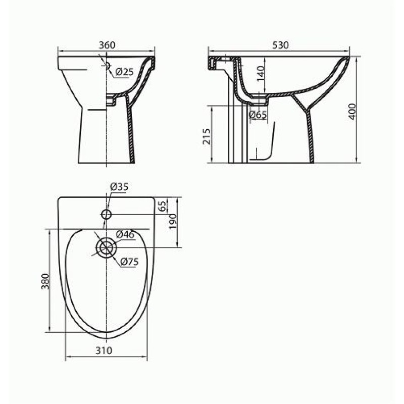 - напольное биде 360x530x400 мм
