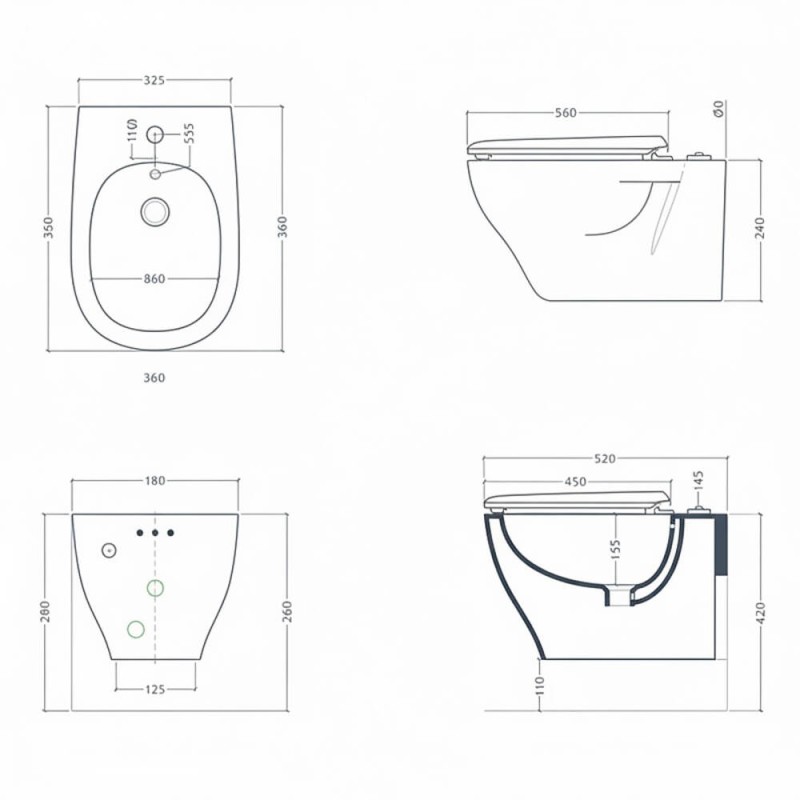 Біде підвісне ArtCeram Ten TEB004 17;00 чорний матовий — характеристики та опис