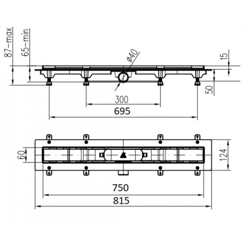 CH-750-BN1 Душевой канал 750 мм с матовой решеткой Бейзик с кромкой из нержавеющей стали