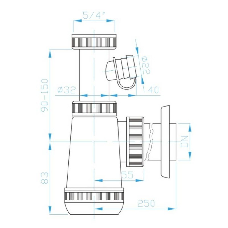 Cифон для раковини Devit DV15330 пластиковий 1/4 з виходом для пральних машин — характеристики та опис