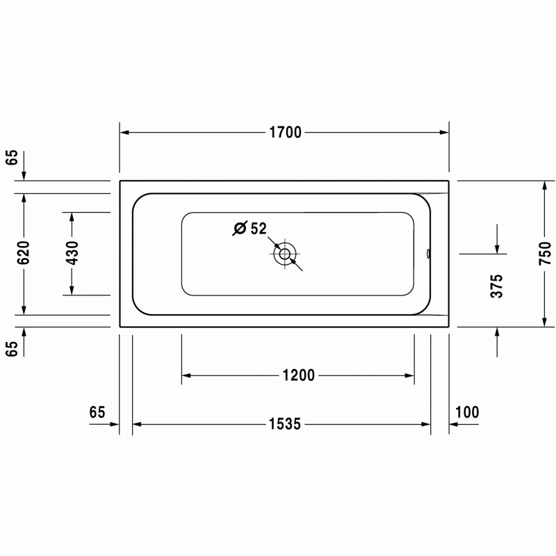 Duravit D-Code ванна прямоугольная 170 см, центральный выпуск. Характеристики ванны:Ширина75 смГлубина40 смДлина170 смОбъем120 лВес20 кгМатериал: санитарный акрил
