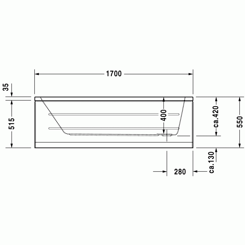 Duravit D-Code ванна прямоугольная 170 см, выпуск в зоне ног. Характеристики ванны:Ширина75 смГлубина40 смДлина170 смОбъем120 лВес20 кгМатериал: санитарный акрил