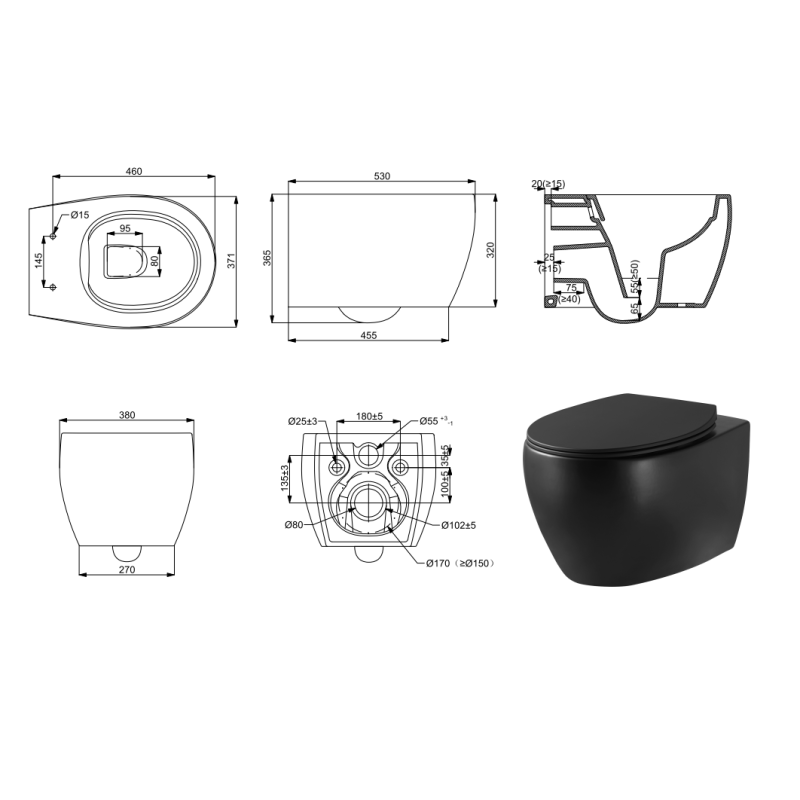 DEVIT 3020155B ACQUA NEW Унитаз подвесной без ободка, тонка крышка soft-close, quickfix, чёрный матовый