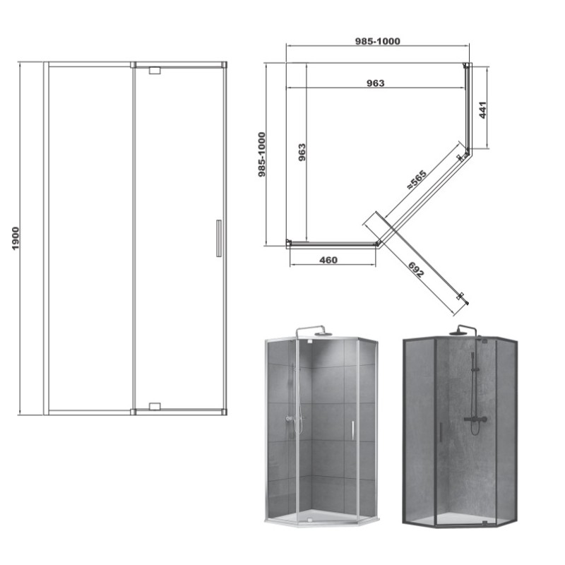 DEVIT FEN0240B ART 2.0 Душевая кабина, пятиугольная, распашная, чёрный матовый, 100 * 100, без поддона, стекло прозрачное