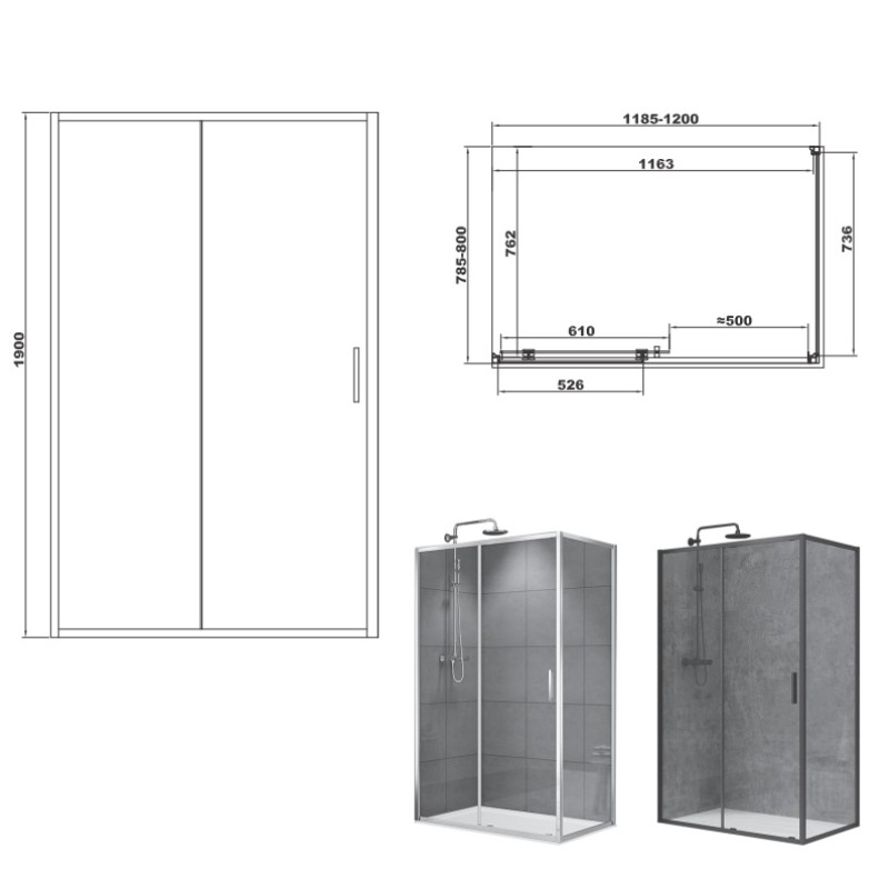 DEVIT FEN2340B ART 2.0 Кабина душевая, прямоугольная, раздвижная, чёрный матовый, 120x80, без поддона, стекло прозрачное