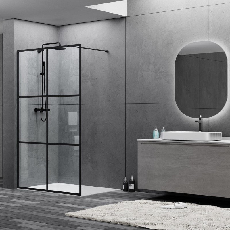 Душова стінка Devit Art FEN3240B 200x120 см профіль чорний матовий, прозоре скло з візерунком в сіточку можна купити в нашому інтернет-магазині за ціною 19170.38 грн. Категорія: Сантехніка.