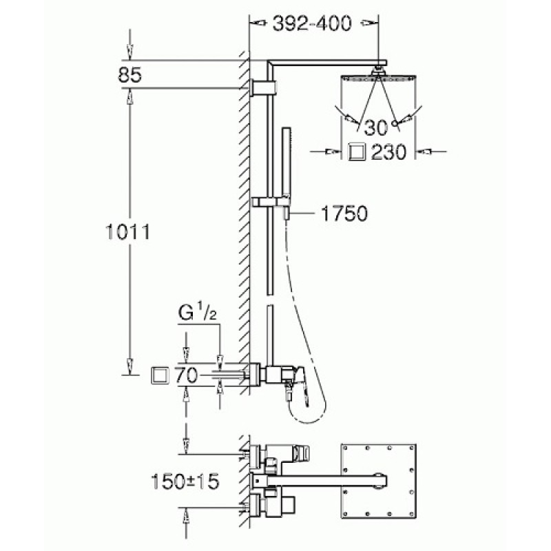 Чертеж с размерами душевой стойки Grohe Eurocube (23147000)