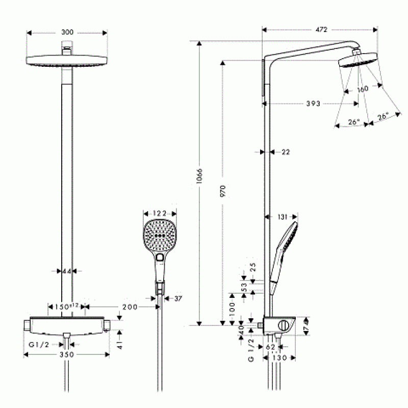 Душевая система Hansgrohe Raindance Select E 300 2jet Showerpipe (27128400) — характеристики та опис
