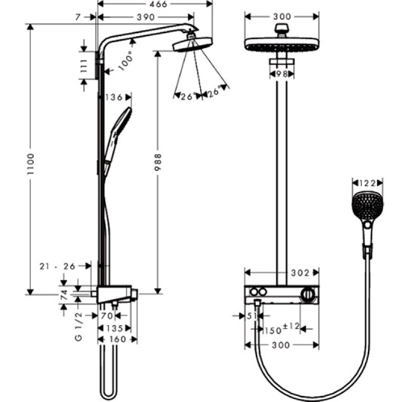 Душевая система Hansgrohe Raindance Select E 300 2jet Showerpipe (27126000) — характеристики та опис