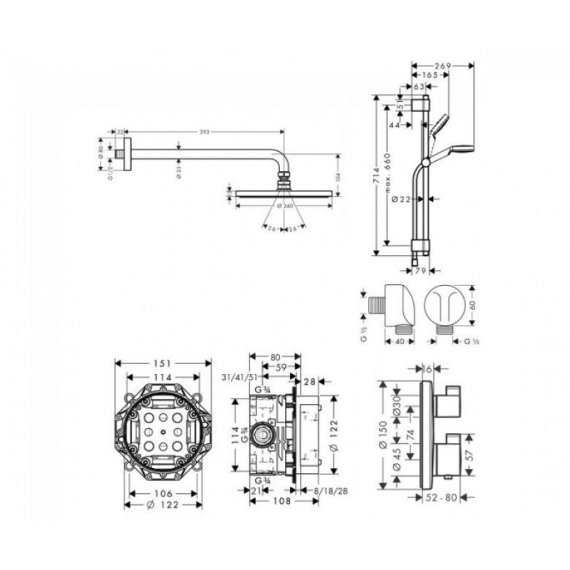 Душевой набор Hansgrohe Ecostat скрытого монтажа 15758111 — характеристики та опис