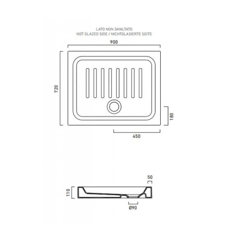 Душевой поддон 90х72 Catalano Base — характеристики та опис