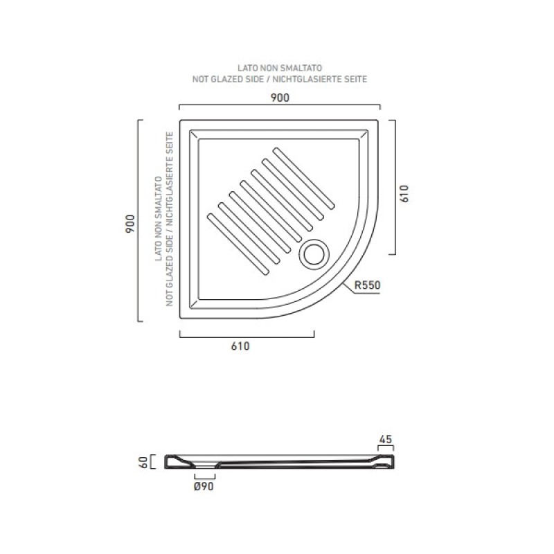 Душевой поддон 90х90 Catalano Verso — характеристики та опис