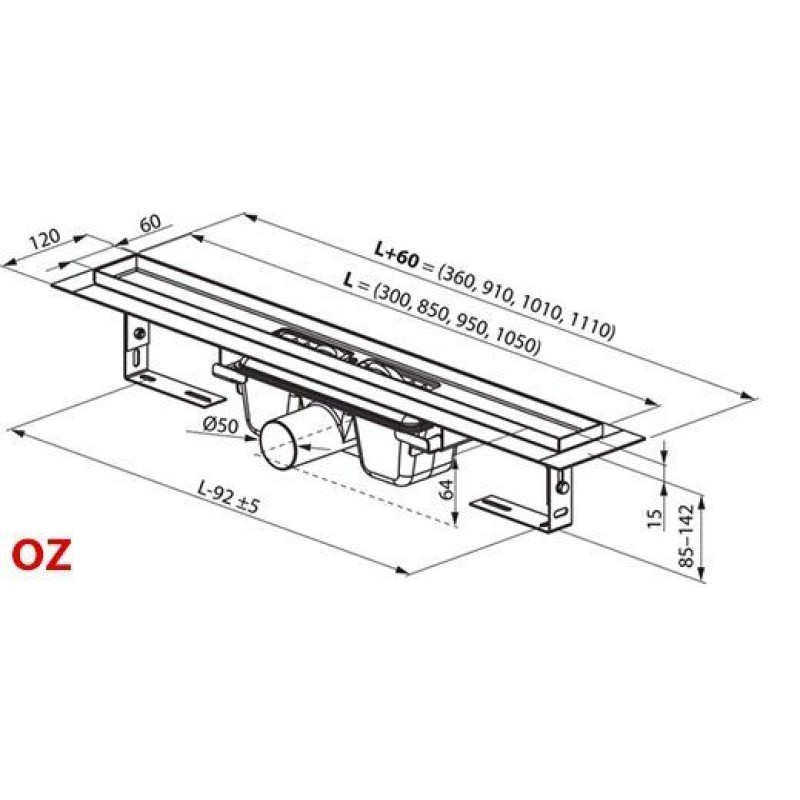 Плитка керамогранит Душовий канал Ravak 10° 750 - нержавеющая сталь для пола