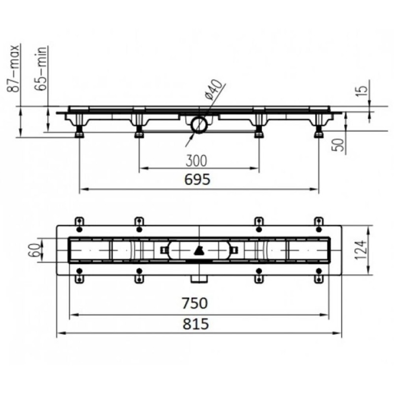Душовий канал MCH CH 750 KN 1 з решіткою Класік (під плитку) 750 мм — характеристики та опис
