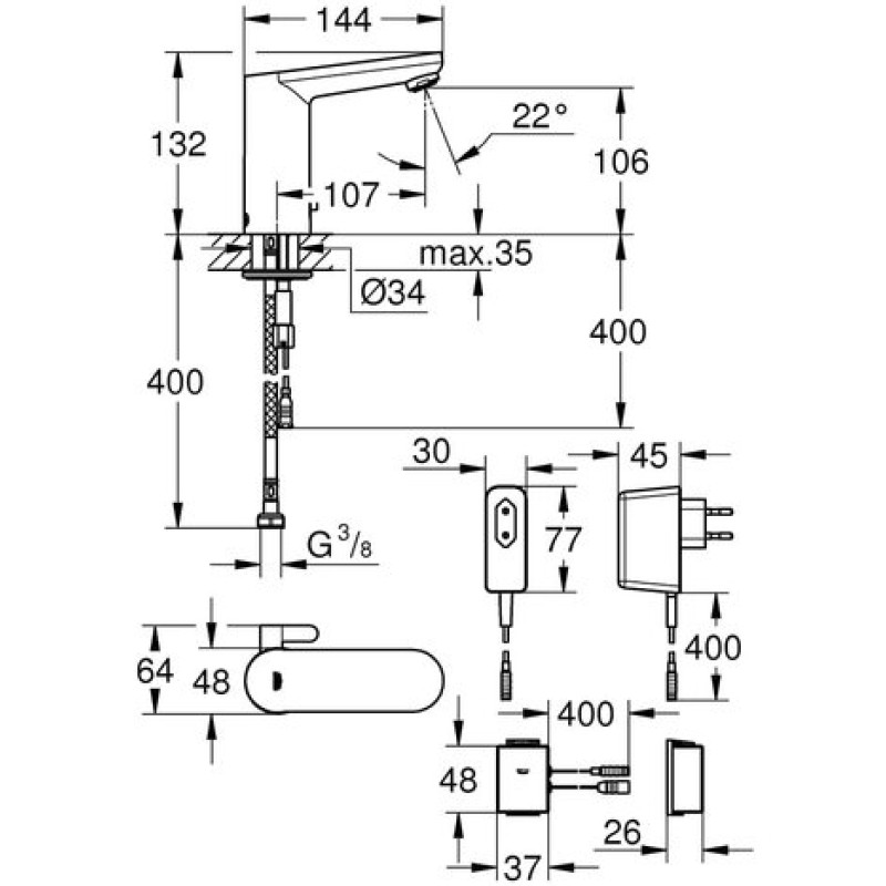 Комплект поставки Grohe Eurosmart Cosmopolitan E Bluetooth (36413000)