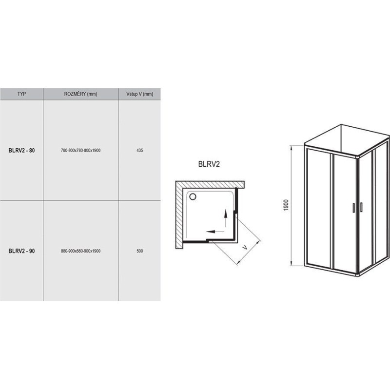 Элемент душевого уголка Ravak Blix BLRV2- 80 Белый Transparent — характеристики та опис
