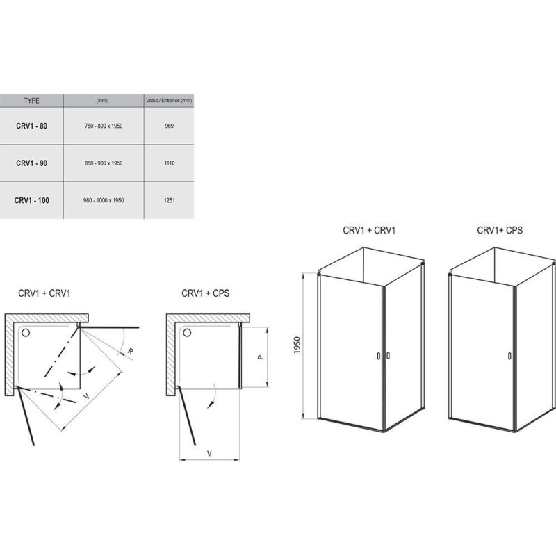 Душова кабіна (половина) прямокутна CRV1-80 Transparent, (1QV40101Z1) RAVAK можна купити в нашому інтернет-магазині за ціною 20205.18 грн. Категорія: Сантехніка.