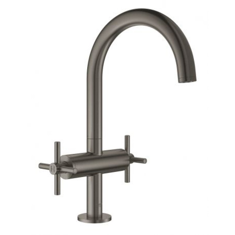Утонченный, элегантный с аккуратно изогнутым изливом Двухвентильный смеситель для раковины GROHE Atrio с прекрасно осязаемыми крестообразными рукоятками - идеальное сочетание линий, пропорций и роскошного покрытия.