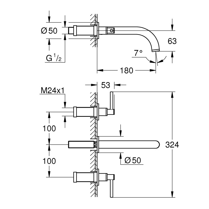 Предназначенный для настенного монтажа, этот смеситель на три отверстия был собран вручную, чтобы идеально функционировать, сохраняя ощущения высшего качества.