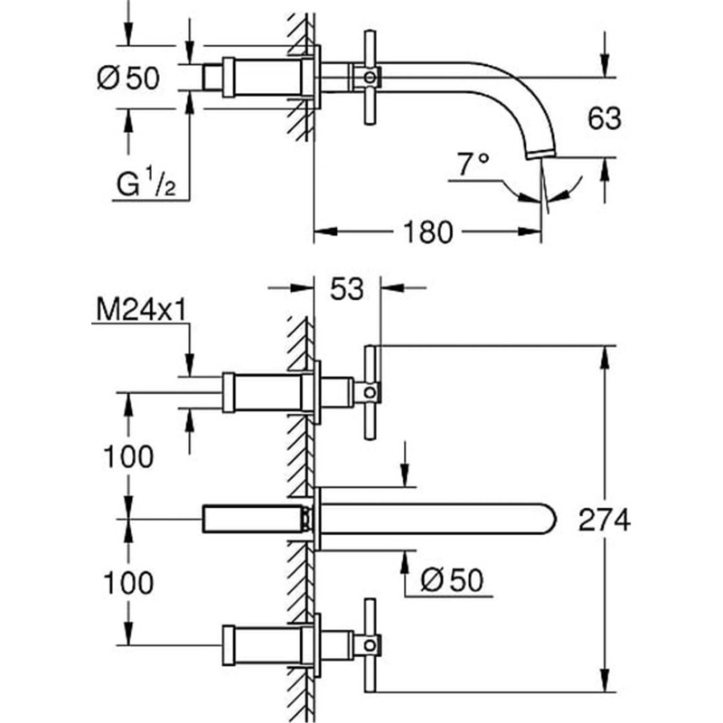 Предназначенный для настенного монтажа, этот смеситель на три отверстия был собран вручную, чтобы идеально функционировать, сохраняя ощущения высокого качества.