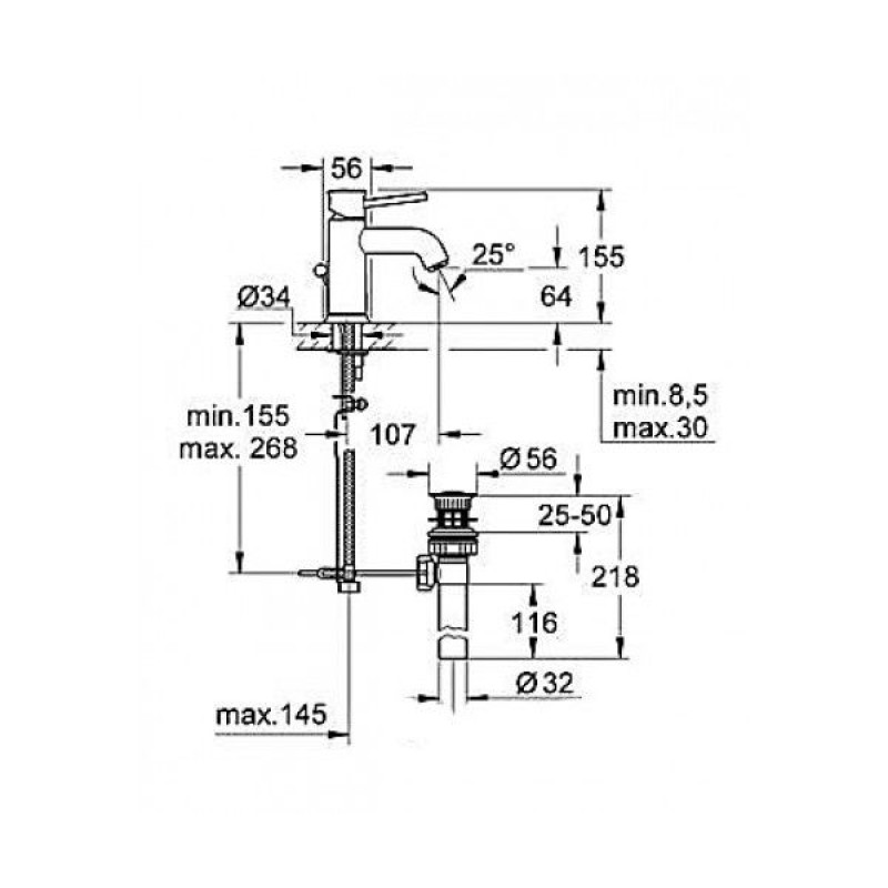 Grohe BauClassic Смеситель для раковины без донного клапана (23162000) S-size — характеристики та опис