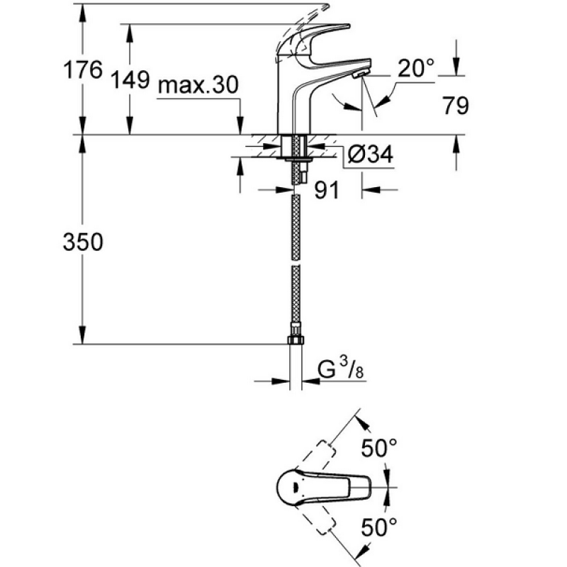Grohe BauCurve Смеситель однорычажный для раковины S-Size (23165000) — характеристики та опис