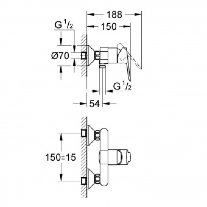 Grohe BauEdge Однорычажный смеситель для душа (32821000)