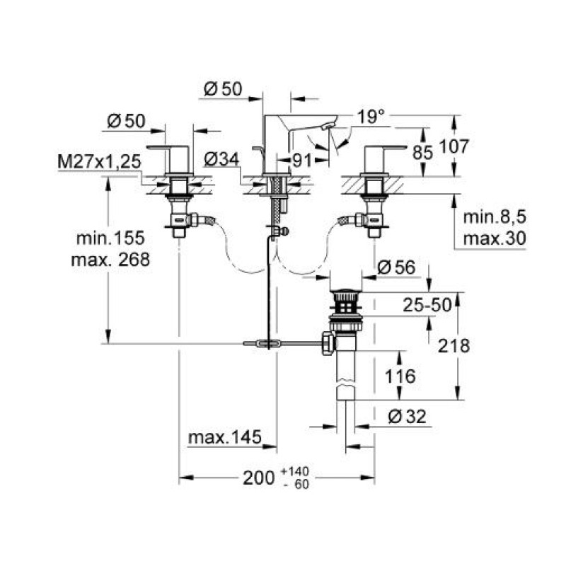Grohe BauEdge Смеситель для раковины на 3 отверстия (20197000) — характеристики та опис