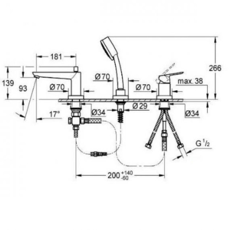 Grohe BauEdge Смеситель однорычажный для ванны на 3 отверстия (2511700A) — характеристики та опис