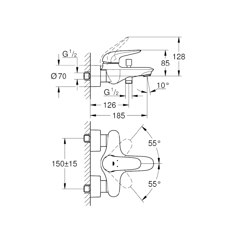 Grohe Eurostyle Смеситель для ванны однорычажный (23726003) — характеристики та опис
