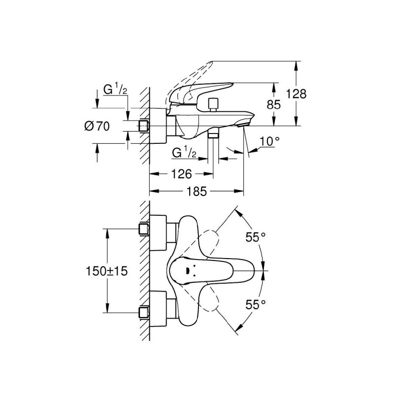 Grohe Eurostyle Смеситель однорычажный для ванны (23726LS3) — характеристики та опис