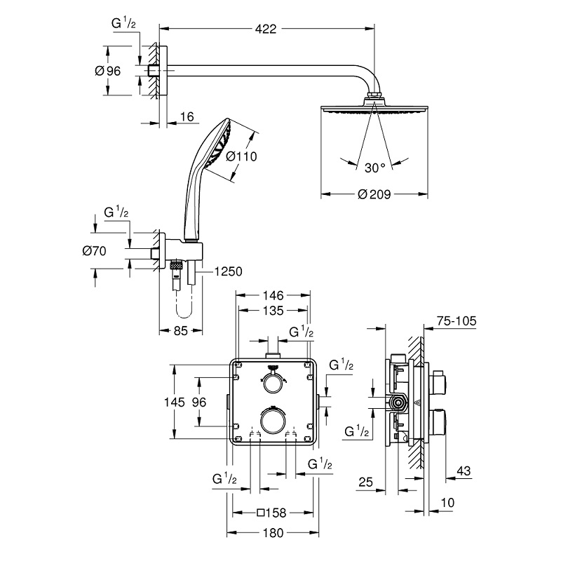 Grohe Grohtherm Rainshower Cosmopolitan 210 душевая система 34734000 — характеристики та опис
