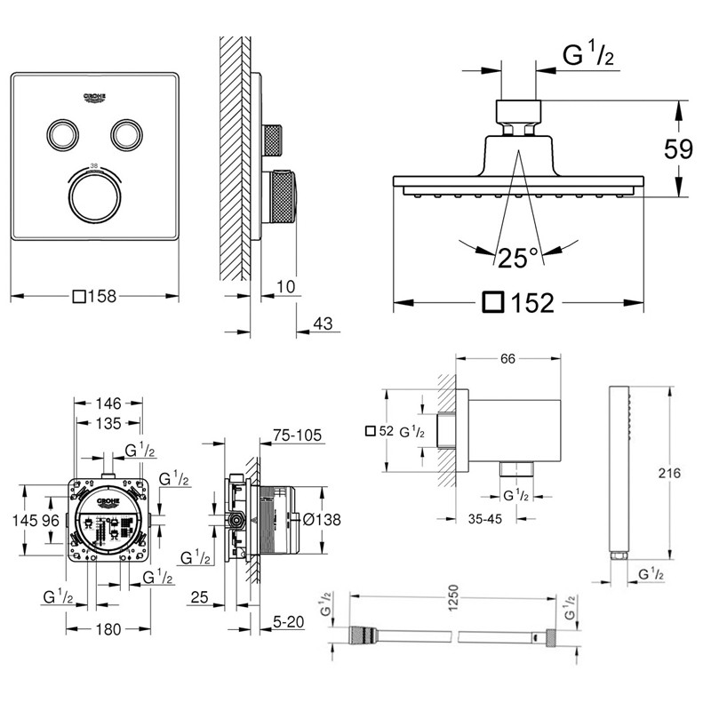 Grohe Grohtherm SmartControl Cube Душевая система 23409SC0 — характеристики та опис