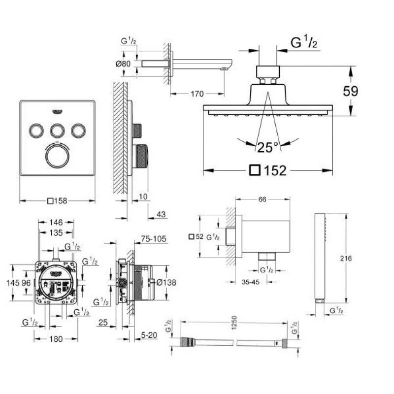 Grohe Grohtherm SmartControl Cube Душевая система скрытого монтажа 23409SC2 — характеристики та опис