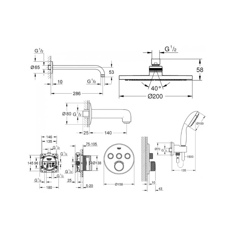 Grohe Grohtherm SmartControl Душевая система для ванны скрытого монтажа (3461402L) — характеристики та опис