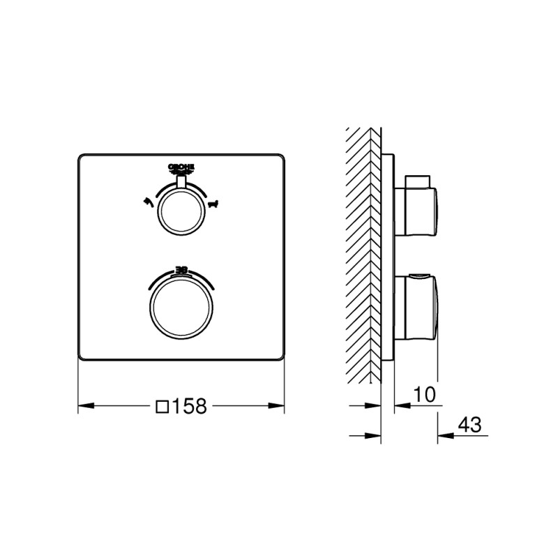 - GROHE SafeStop Plus® (дополнительная опция) - ограничитель температуры воды до 43°C/46°C