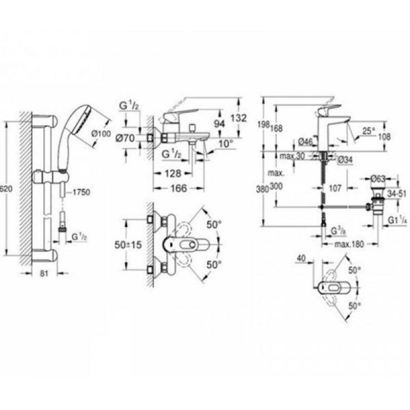 Grohe Набор смесителей BAU LOOP 3 в 1 для ванны (123215М)