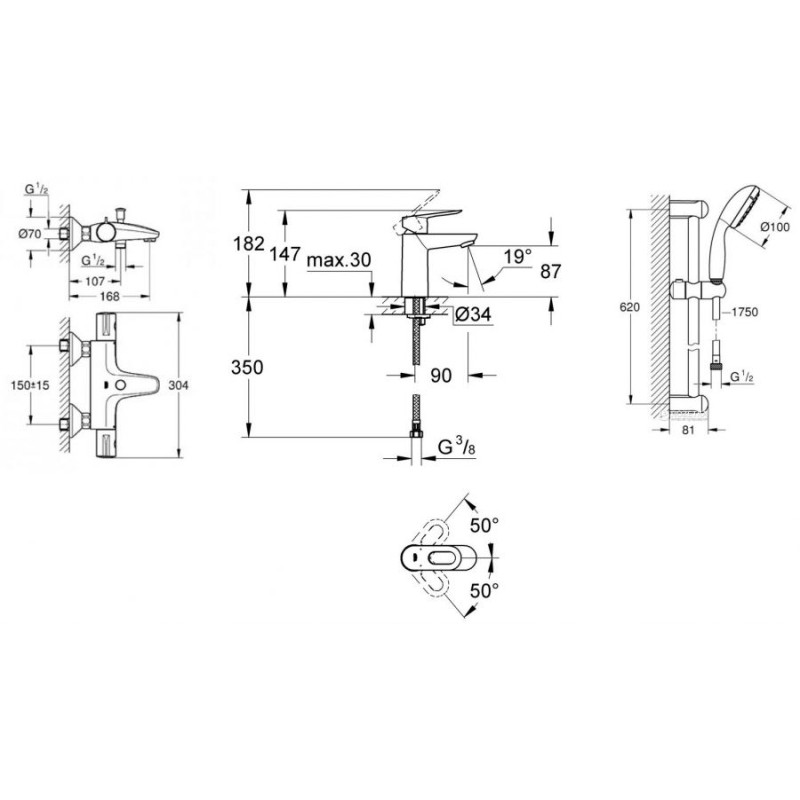 Grohe Набор смесителей BAU LOOP 3 в 1 для ванны и душа с термостатом (34550TS)