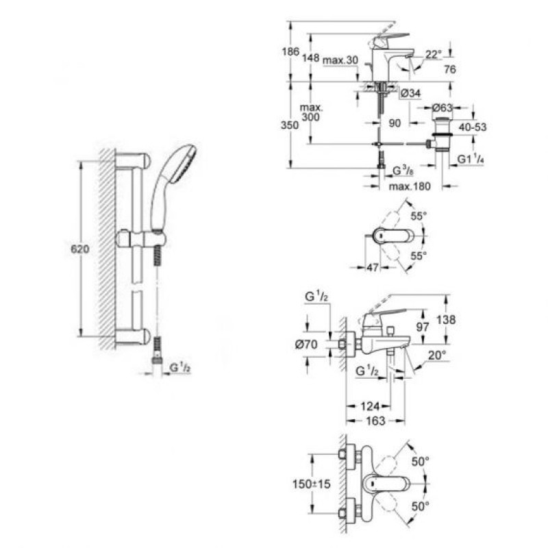 Grohe Набор смесителей Eurosmart Cosmopolitan 3 в 1 для ванны и душа (126111S)