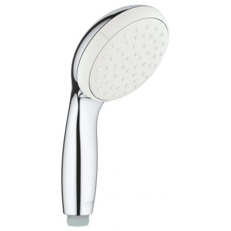 Данная лейка оснащена одним режимом струи Rain, превосходный поток которой обеспечит технология GROHE DreamSpray®. Об изумительном сиянии изделия и его первоначальном восхитительном виде позаботится уникальное износостойкое покрытие GROHE StarLight®, а технология GROHE SpeedClean® воспрепятствует образованию известковых отложений на поверхности душевого диcка. Еще одним значимым преимуществом данной модели является силиконовый ободок GROHE ShockProof®, который защитит ручной душ и душевой поддон от повреждений в случае падения душевой лейки.