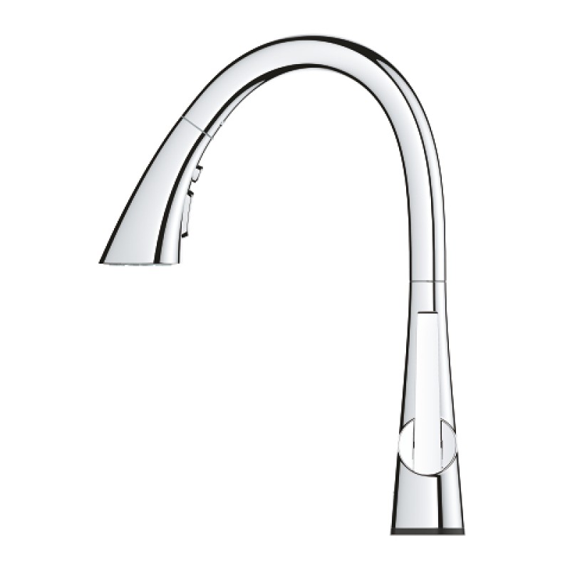 выдвижная лейка с 3 режимами струи переключение: ламинарный режим струи, душевой jet, GROHE Blade режим jet (снижает расход воды до 70 % и увеличиывает напор воды)