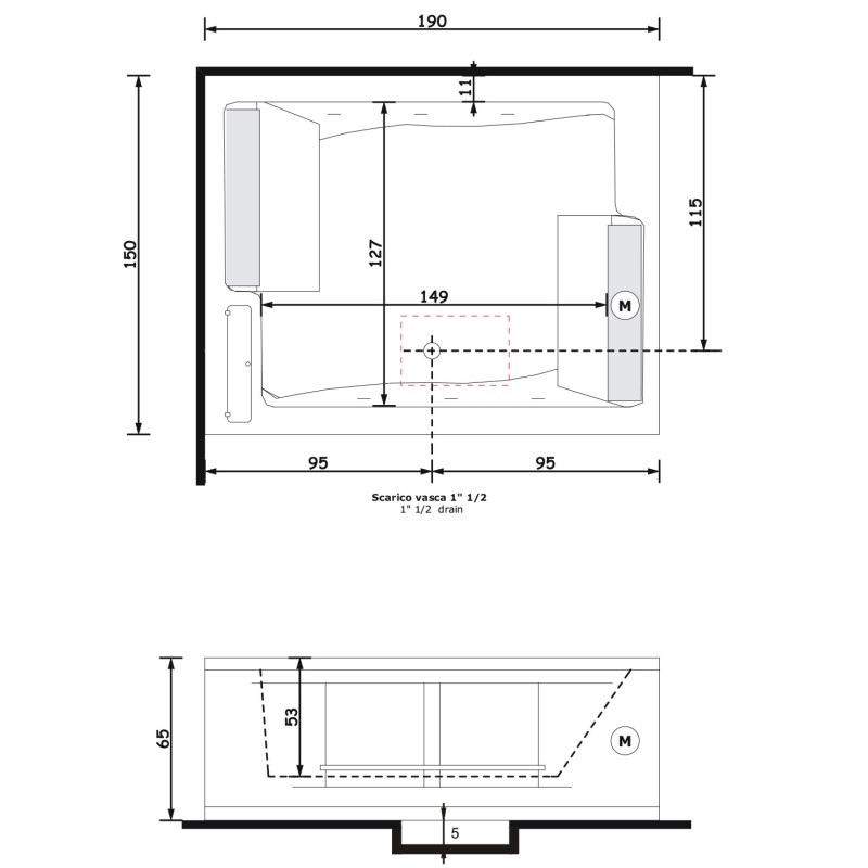 Gruppo Treesse BIS mts Ванна 190x150xh64 см — характеристики та опис
