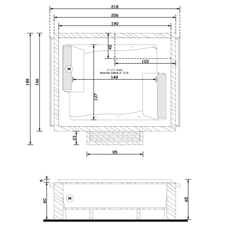 Gruppo Treesse BIS One Top Ванна в современном стиле 218x166xh67 см — характеристики та опис