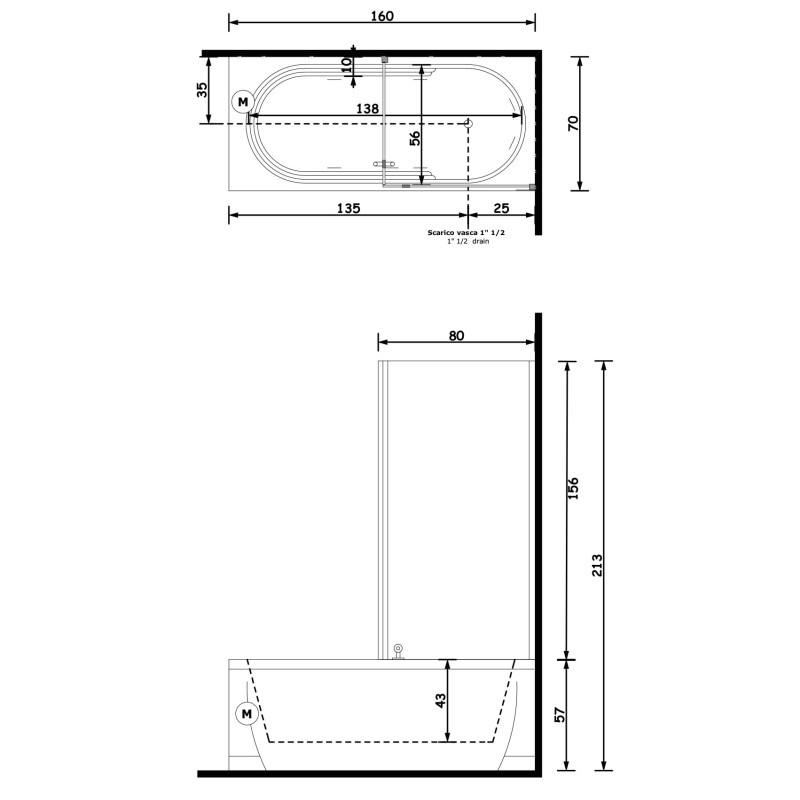 Gruppo Treesse Cristina Box Easy Ванна прямоугольная 160x70xh213 см — характеристики та опис