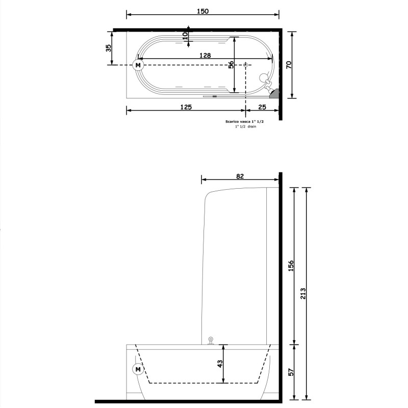 Gruppo Treesse Cristina Box Ванна прямоугольная 150x70xh213 см — характеристики та опис