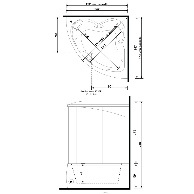 Gruppo Treesse Dafne Box Ванна 150x150xh234 см — характеристики та опис