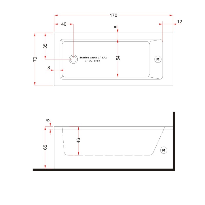 Gruppo Treesse Dream Ванна в современном стиле 170x70xh65 см — характеристики та опис