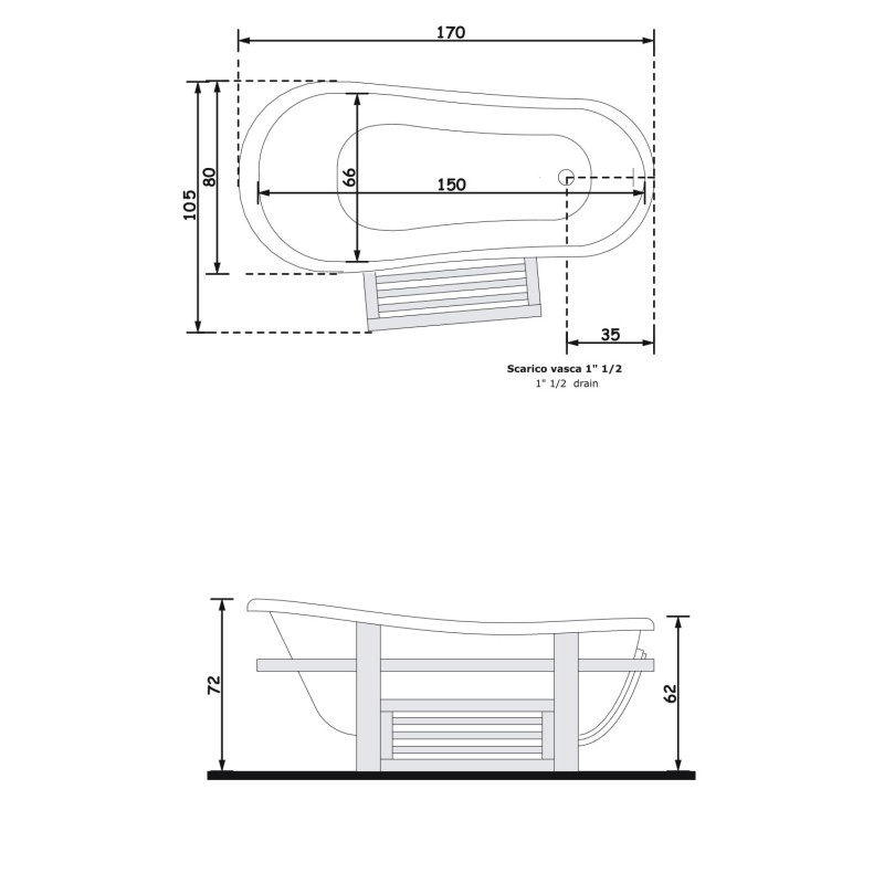 Gruppo Treesse Epoca One Top Ванна в классическом стиле 170x80xh73 см, цвет белый, венге — характеристики та опис