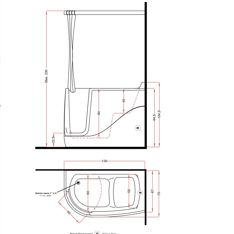 Gruppo Treesse Gen-X Midi Ванна 130x75xh220 см — характеристики та опис